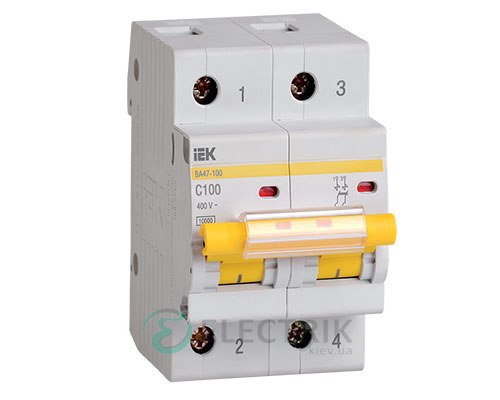 Автоматический выключатель ВА47-100 2P 50 А х-ка C, IEK MVA40-2-050-C разработан для срабатывания при коротких замыканиях в сети и перегрузах. Аппарат полностью соответствует международному стандарту. Он мгновенно отключается при силе тока в момент превышения своего номинала.