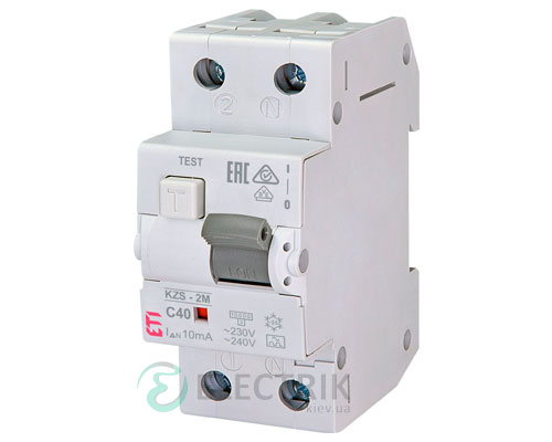 Дифференциальный автоматический выключатель KZS-2M C 40/0,01 тип A (10kA), ETI предназначен для защиты электрических сетей от токов короткого замыкания, перегрузки и токов утечки.