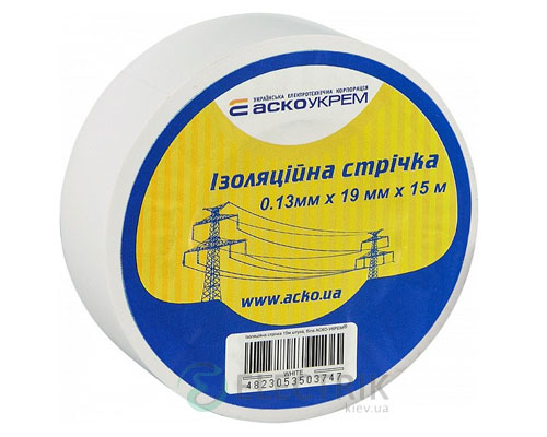 Характеристика: Изолента АСКО-УКРЕМ ПВХ 0,13мм*19мм/15м белая