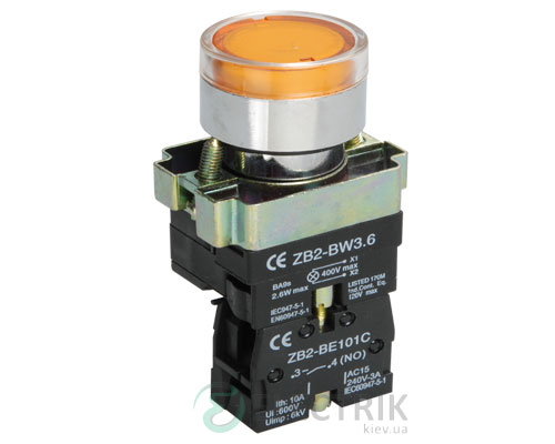 Характеристика: Кнопка управления LAY5-BW3561 с подсветкой желтая 1з, IEK