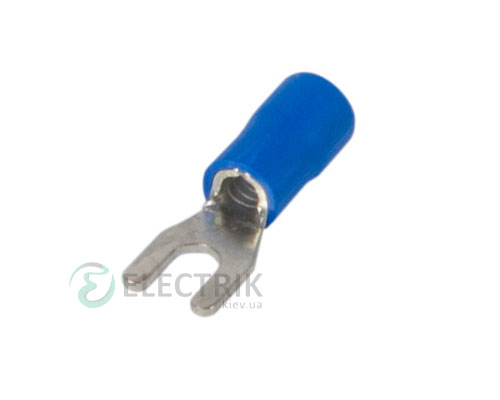 Наконечник вилочный изолированный 0.5-1.5 мм² синий (упаковка 100 шт.) e.terminal.stand.sv.1,25.3,2.blue, E.NEXT предназначен для оконцевания многопроволочных жил проводов и присоединения к болтовым выводам электротехнических устройств