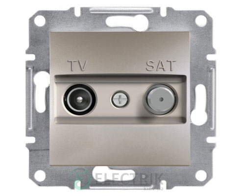 Розетка TV-SAT индивидуальная (1 дБ) бронза, Asfora – изделие изготовлено с надежного, негорючего и долговечного пластиката приятного оттенка. Модель выполнена по соответствующим стандартам качества, а материал весьма прочный и долговечный с использованием фотоингибиторов.