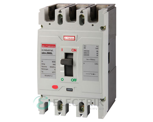 Шкафной силовой автоматический выключатель e.industrial.ukm.250SL.100, 3P 100А 65кА, E.NEXT защищает потребителей электросетей и электроэнергии от весьма продолжительных перегрузов в сети, коротких замыканий, и других внештатных ситуаций. Устройство такого типа используется для активной и оперативной коммутации определенных участков электрической цепи. Модель работает с напряжением до 800 Вольт, при частоте тока 50 Герц. С помощью мощного флажка автомата, можно оперативно включать либо отключать цеха, раздаточные и конвейерные линии на промышленных предприятиях, фабриках, заводах и мастерских.