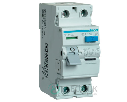Устройство защитного отключения (УЗО) CD264J 2P 63A 30mA тип AC, Hager славятся своей универсальностью, они применяются в бытовых и коммерческих целях. Модель устанавливается в частных домах, офисах, супермаркетах и развлекательных центрах, а также на промышленных объектах. Такая универсальность указывает на высокое качество представленной электротехнической продукции. Устройства активно применяются в электрических щитовых в паре с автоматическими выключателями и другим оборудованием. УЗО фиксируется на стандартную 35 мм металлическую рейку. Изделие устанавливается на вводную либо отдельную линию, где обеспечивается поиск дифференциальных токов и размыкается цепь.